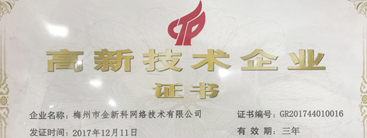 2017年12月11日,國(guó)家高新技術(shù)企業(yè)認(rèn)定服務(wù)平臺(tái)對(duì)外公布了“廣東省2017年第二批擬認(rèn)定高新技術(shù)企業(yè)名單”,梅州市金新科網(wǎng)絡(luò)技術(shù)有限公司作為一家互聯(lián)網(wǎng)信息化服務(wù)類高科技產(chǎn)業(yè)的公司,順利通過認(rèn)定,榮登榜單之中!